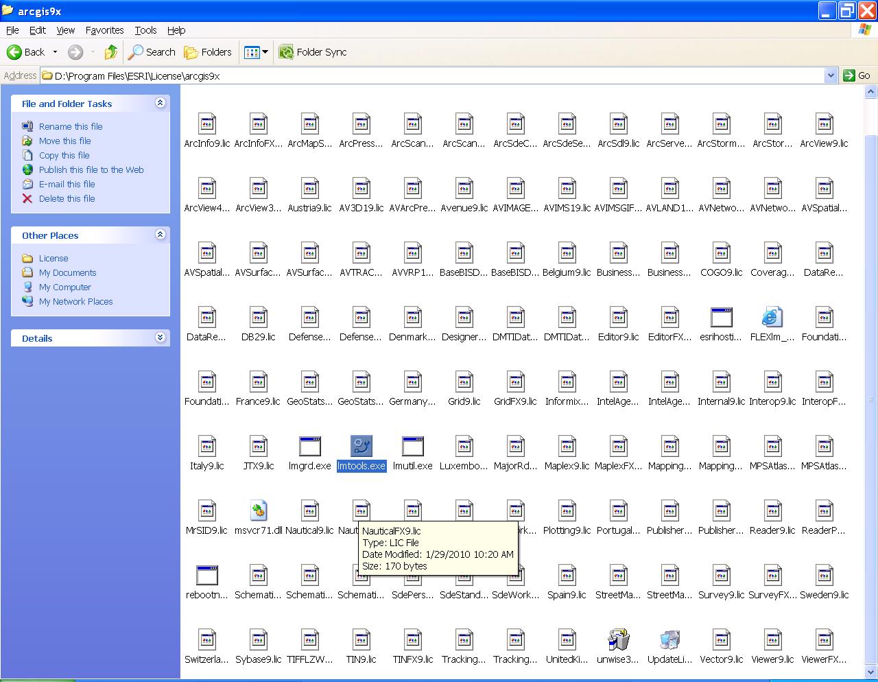 14 – وارد مسیر نصب کرک شوید (معمولا C:Program FilesESRILicensearcgis9x) . فایل LMtools.exe را پیدا کنید ( در شکل زیر LMtools.exe با رنگ تیره تر مشخص شده است ) و آنرا اجرا نمایید .
